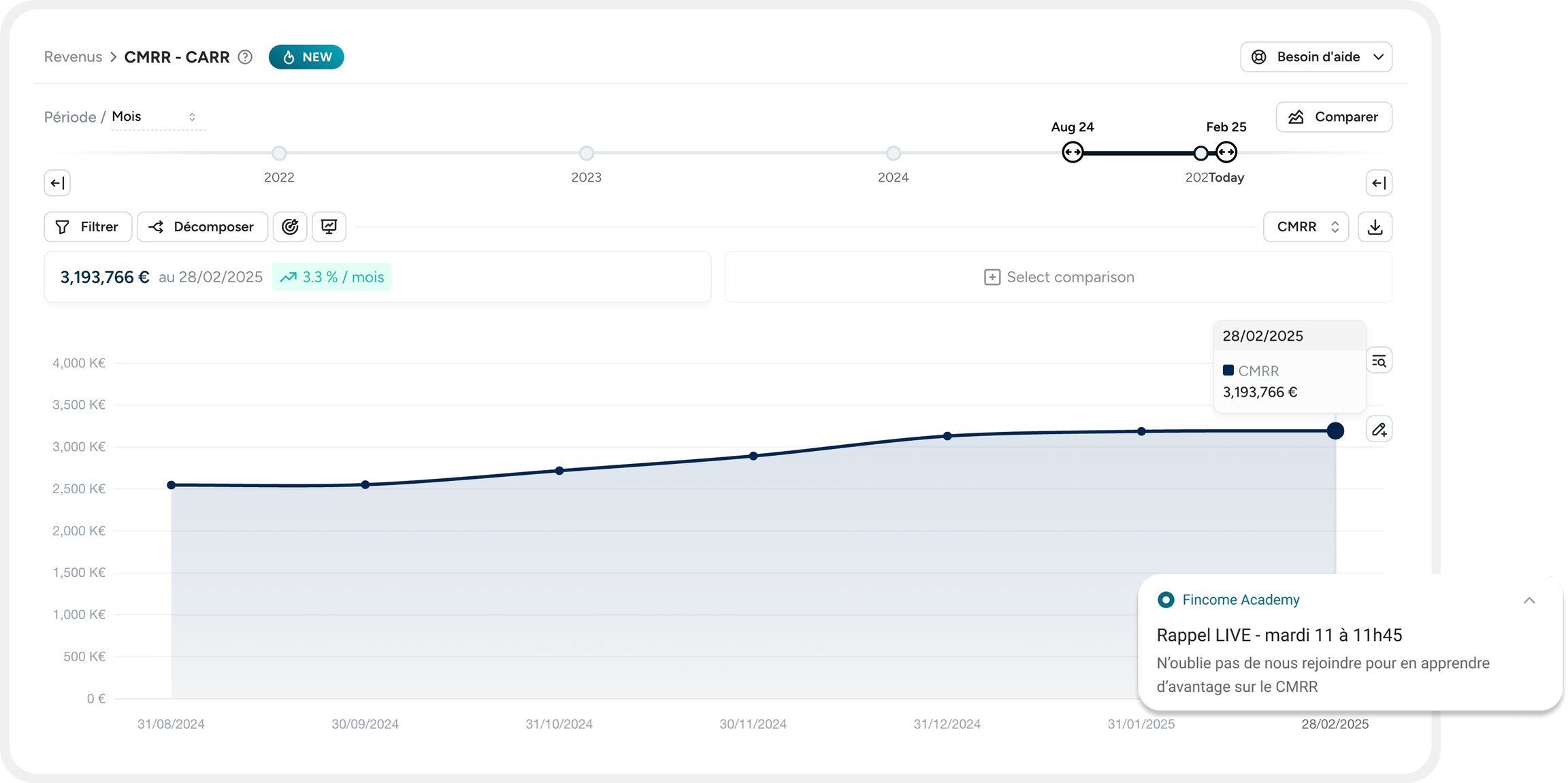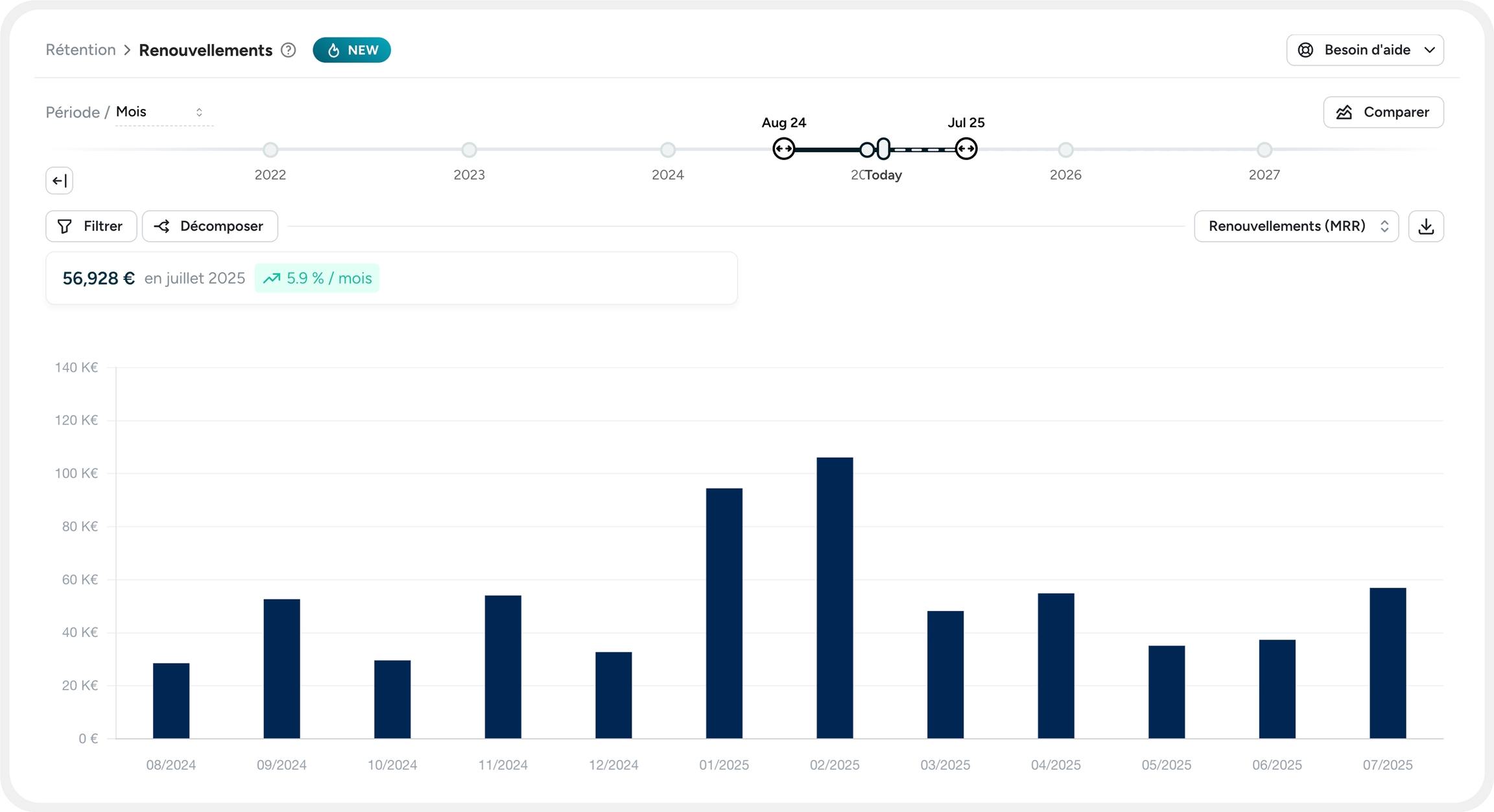 💡 Avec une visualisation intuitive et des filtres avancés, vous gardez le contrôle sur votre MRR renouvelable et optimisez votre gestion CSM