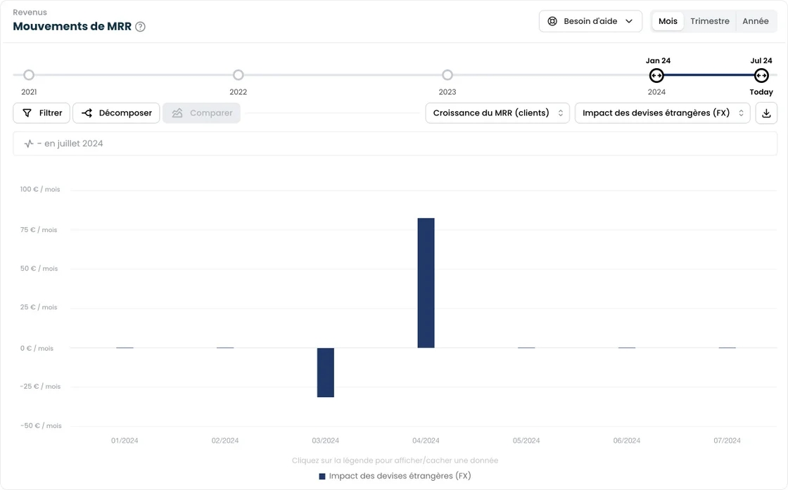 If you invoice customers in a currency other than that chosen for your dashboard, the impact of exchange rate fluctuations is now isolated from other types of MRO movements.